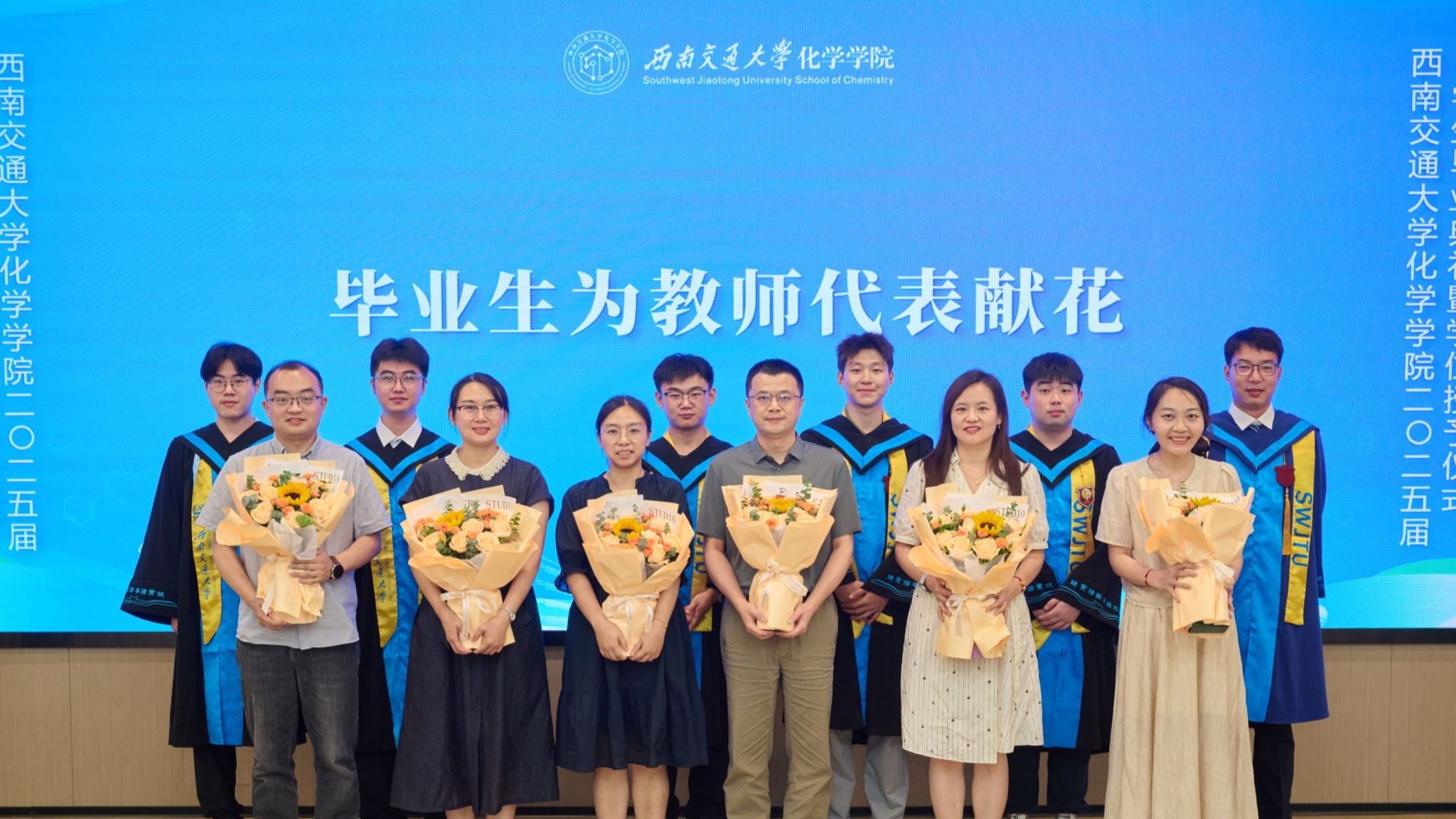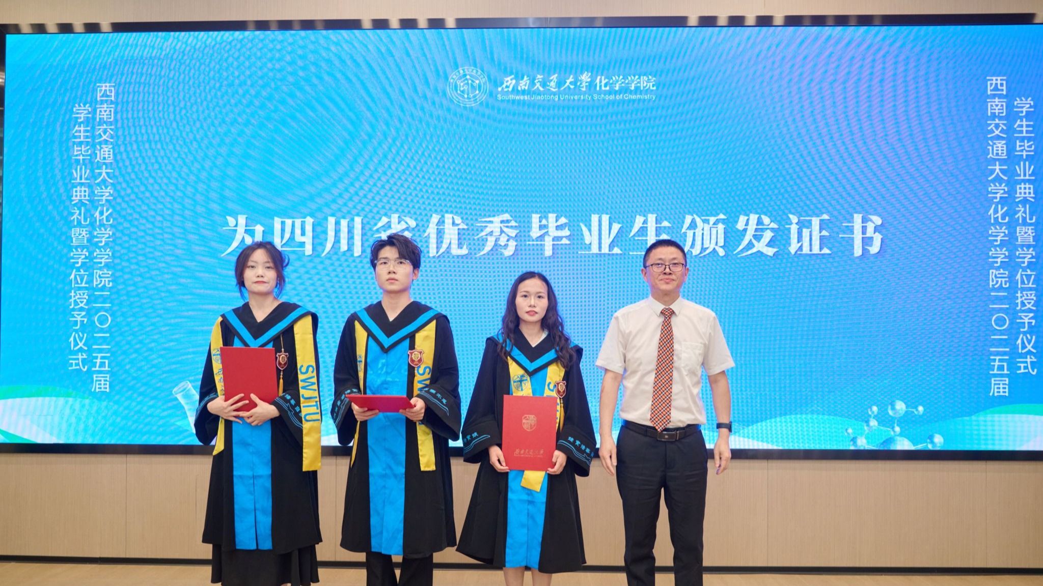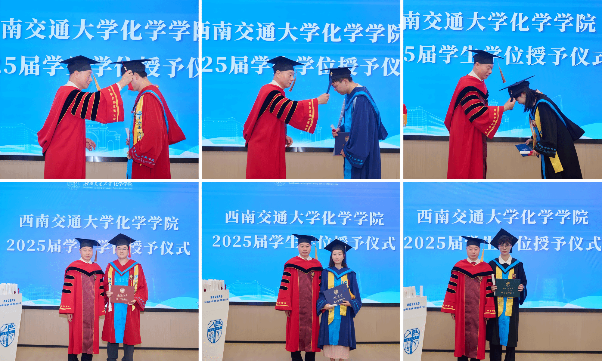 接着,学院举行了2025届学生学位授予仪式。周祚万院长逐一为2025届博士毕业生、硕士毕业生、本科毕业生授位。毕业生们依次上台接受院长拨穗授礼,并合影留念。