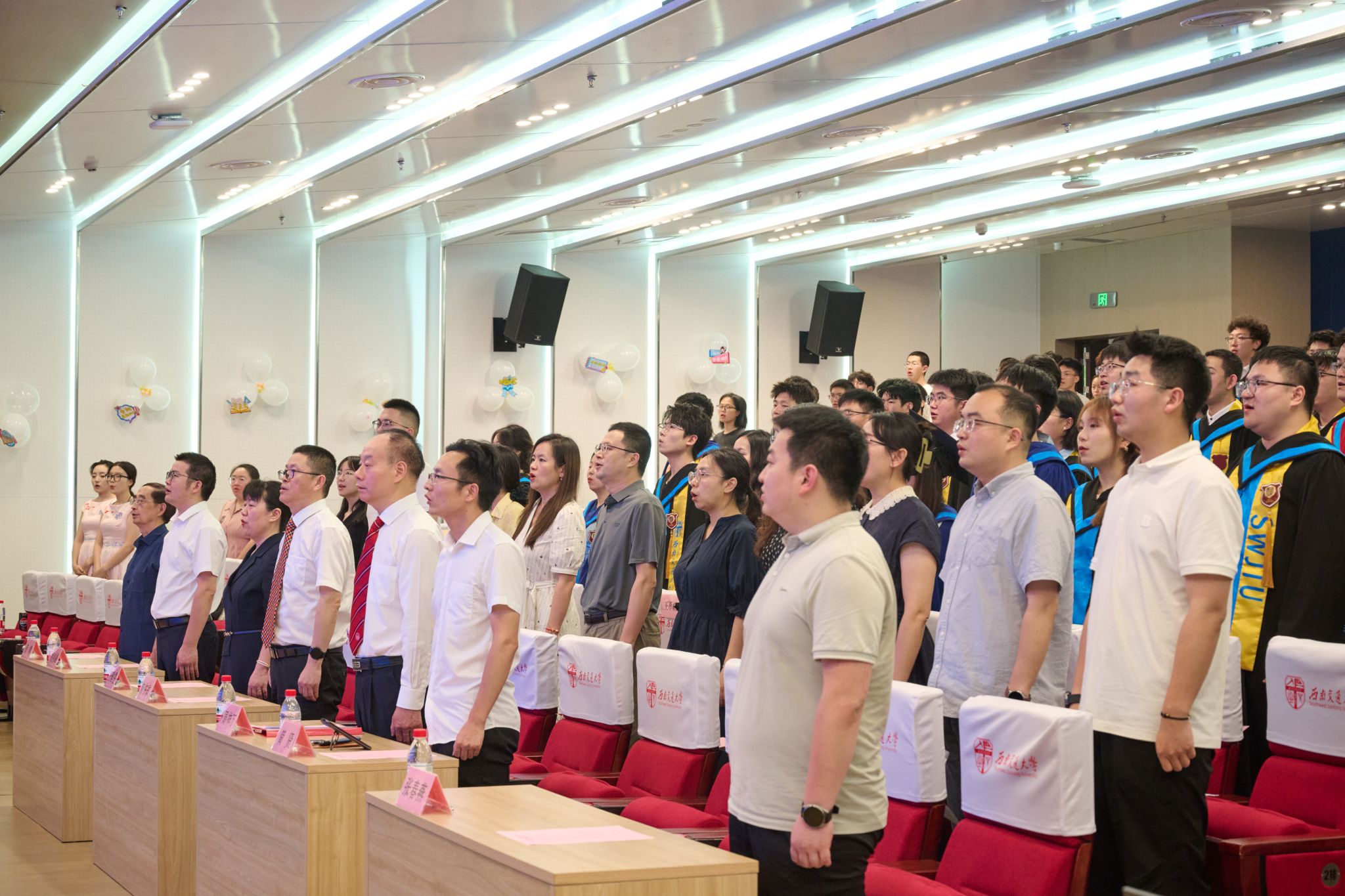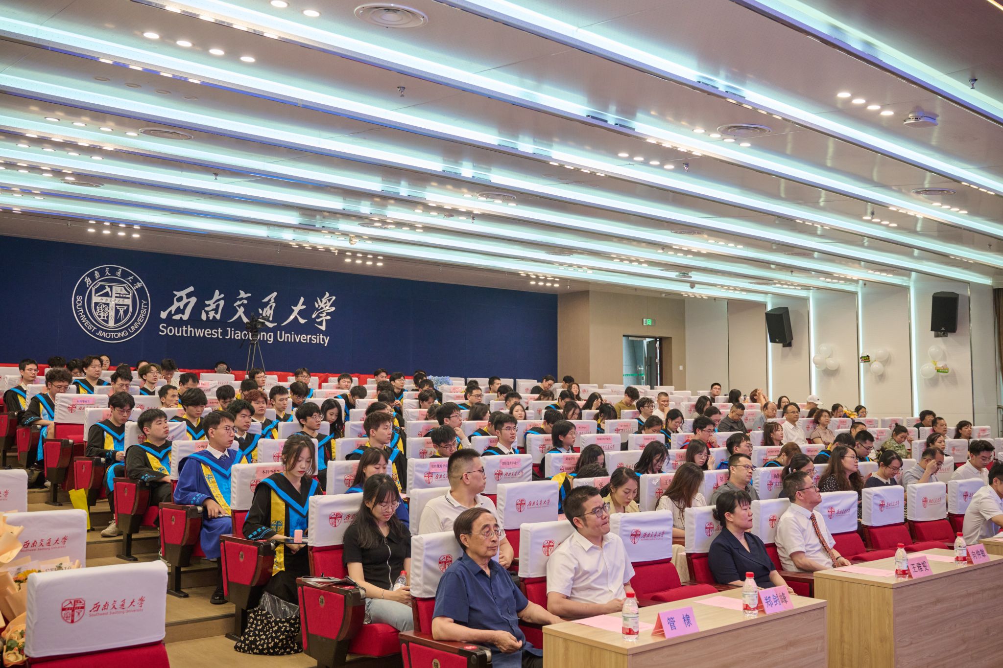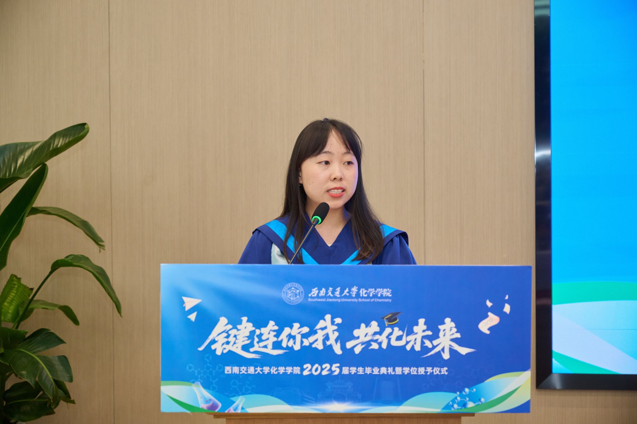 6月20日下午,看看屋 2025届学生毕业典礼暨学位授予仪式在犀浦校区二号报告厅隆重举行。看看屋 党委书记向仲敏,院长周祚万,党委副书记张春燕,副院长王雅雯,校友代表、电子科技大学材料与能源学院教授简贤,院务委员郑剑峰,教学督导组组长、退休教师管棣,高分子系主任杨静晖、副主任高霞,合成化学系主任彭羽,应用化学系主任王萃娟,公共化学教学部主任张颜,本科2021级学生班导师,专业课教师,学生工作组全体辅导员,全体本科毕业生、研究生毕业生代表及学生家长出席典礼。典礼由张春燕副书记主持。