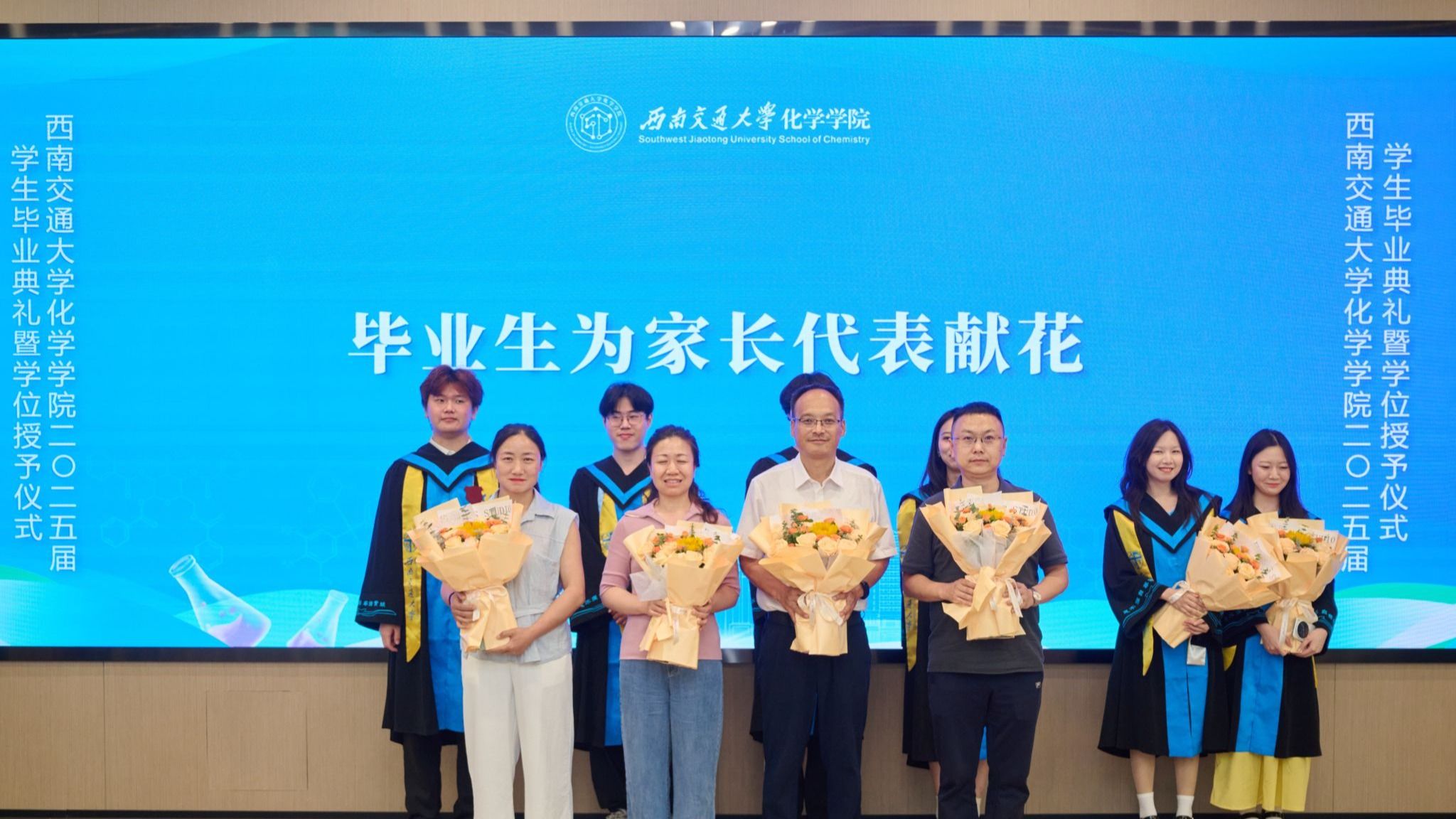 天涯海角难忘父母恩情,在人生路上的重要时刻,毕业生为支持和关心同学们成长的家长代表送上感谢花束。