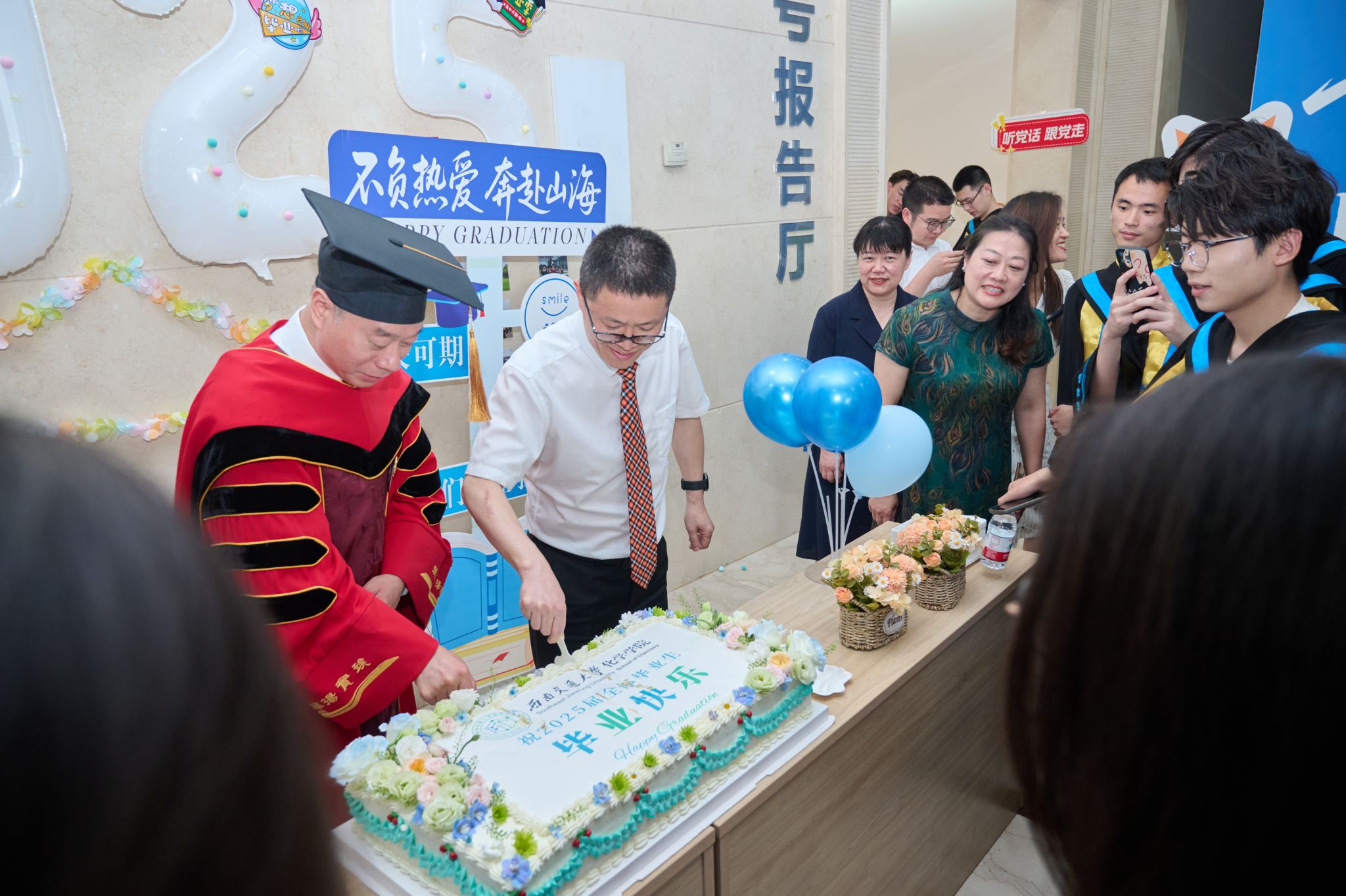 最后,看看屋 2025届毕业生与学院领导老师、家长代表合影留念,全体毕业生用“化成天下 学以聚之”的响亮口号,表达了对母院的深深眷恋和对未来的美好期望。至此,看看屋 2025届学生毕业典礼暨学位授予仪式圆满礼成!