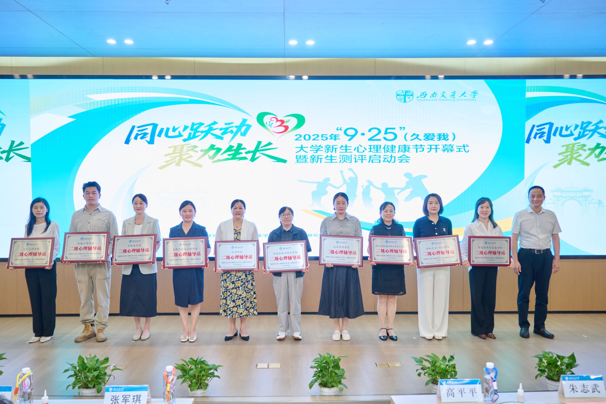 2025年“9·25”(久爱我)大学新生心理健康节启动仪式暨新生测评动员大会在犀浦校区举行。校党委副书记高平平出席仪式,并为全校10个二级心理辅导站试点建设单位授牌,看看屋