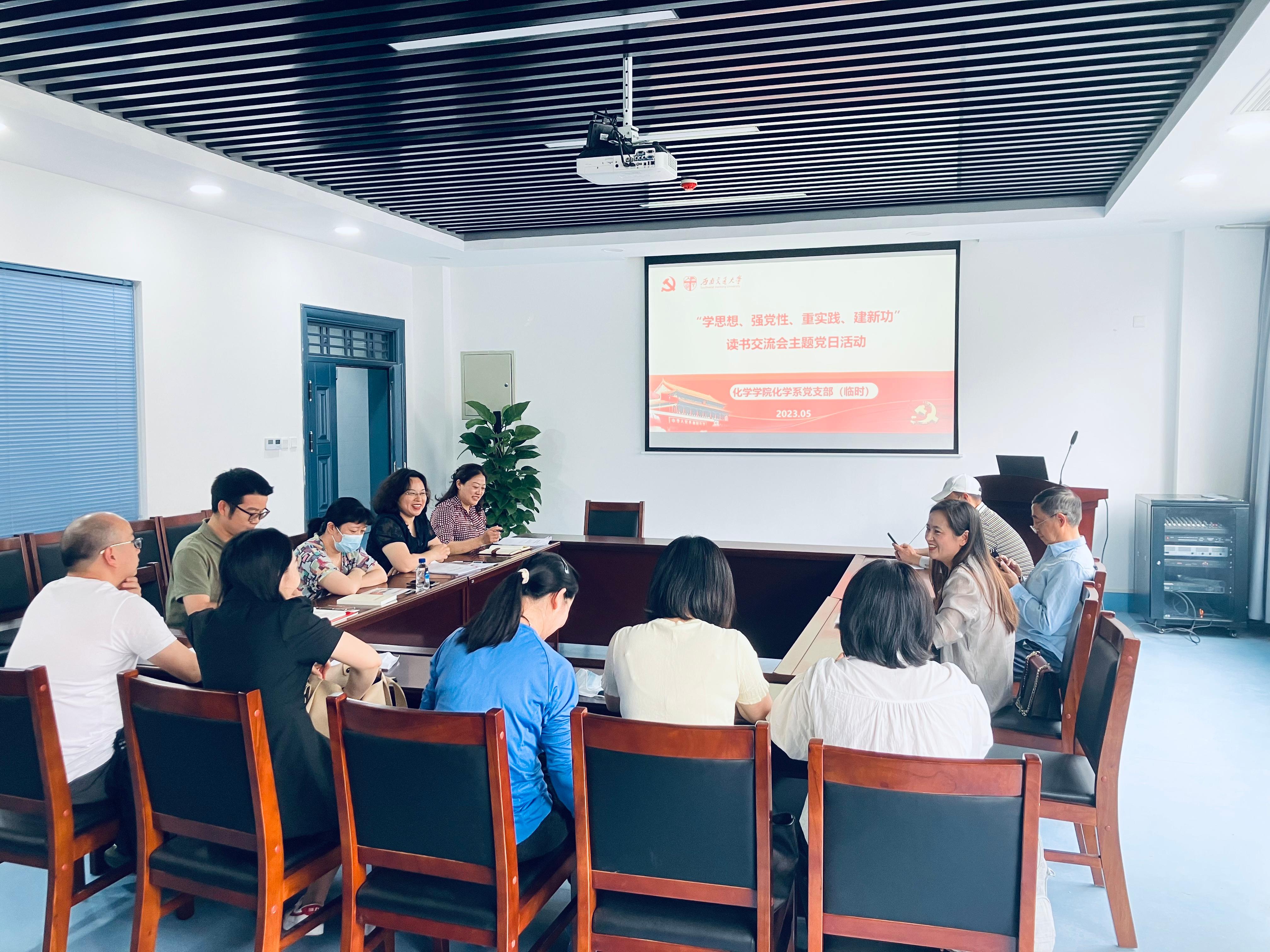 化学系教工党支部于九里校区工业中心C座C203报告厅开展“学思想、强党性、重实践、建新功”读书交流会主题党日活动。本次活动由郑剑峰同志主持。