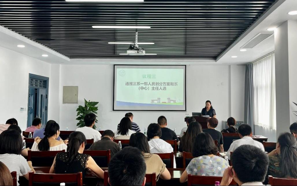 的四位教师们,对新教师的加盟表示热烈地欢迎。李书记通报了学院领导班子具体分工以及三系一部人员划分方案和系(中心)主任人选。