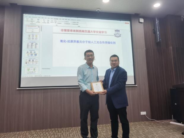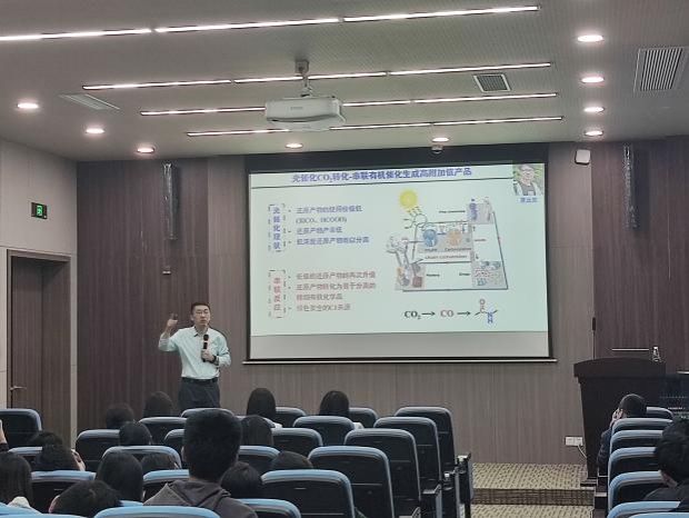 并以“氧化-还原异基元分子结人工光合作用催化剂”为题开展了一场精彩的学术报告。此次报告由王勇副院长主持,王雅雯教授、姜曼副教授、王萃娟副教授、刘霞副教授、鲍雨副研究员、张颜老师、王春燕老师、王颖等教师和40余名研究生参加了此次学术交流活动。