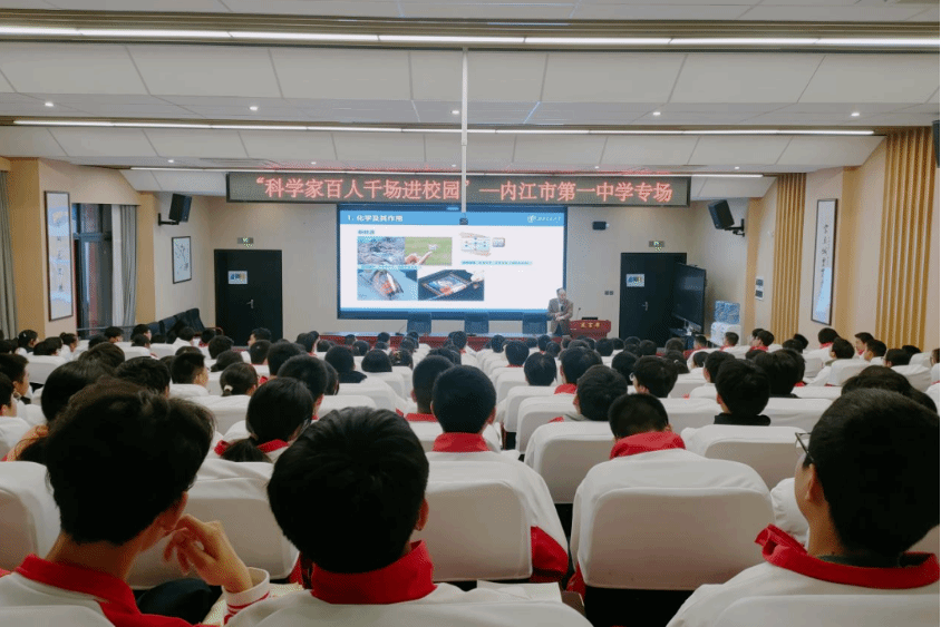 根据活动安排,周祚万教授先后前往内江市第一中学、内江东兴初级中学校、内江东兴区高桥小学、威远县镇西中学、威远县凤翔中学、威远县南晖小学等6所学校围绕“绿色化学与碳中和”主题,根据学生层次,周祚万教授将复杂的科学理论与日常生活应用相结合,用通俗易懂的语言介绍了绿色化学、功能高分子、碳中和等学术领域的研究现状和发展方向,开阔了学生们的科学视野,启迪了学生们的科学思维。
