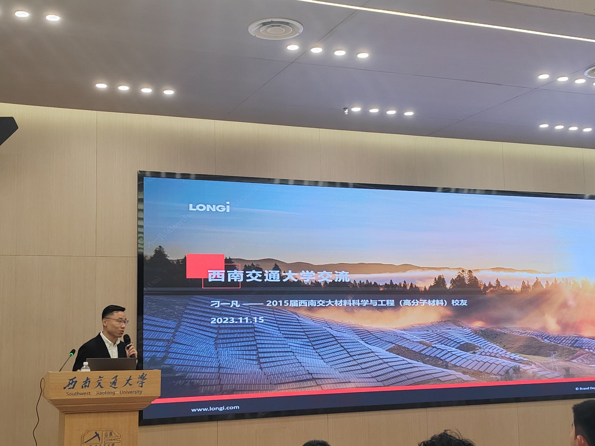 刁一凡学长就个人留学经历,介绍了博士期间研究项目的基本原理以及应用,并分享了他在学习研究期间的经验与感悟;随后,他根据就业履历分析了光伏行业的现状及未来发展趋势,他提到,在碳中和的大背景下,现在的能源结构仍需进行调整,同时肯定了伏电力的未来,并向大家介绍了光伏产业如何推动世界能源转型。