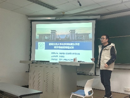 高分子系新教师开课试讲活动在九里校区逸夫馆4304A教室举行。本次活动邀请了院长周祚万、副院长王勇、高分子系主任杨静晖、教学经验丰富的资深教师管棣、姜曼等老师担任评委,由学院青年教师董秀、孙得翔、高霞、张海以及资实处赵春花等老师依次进行授课试讲。