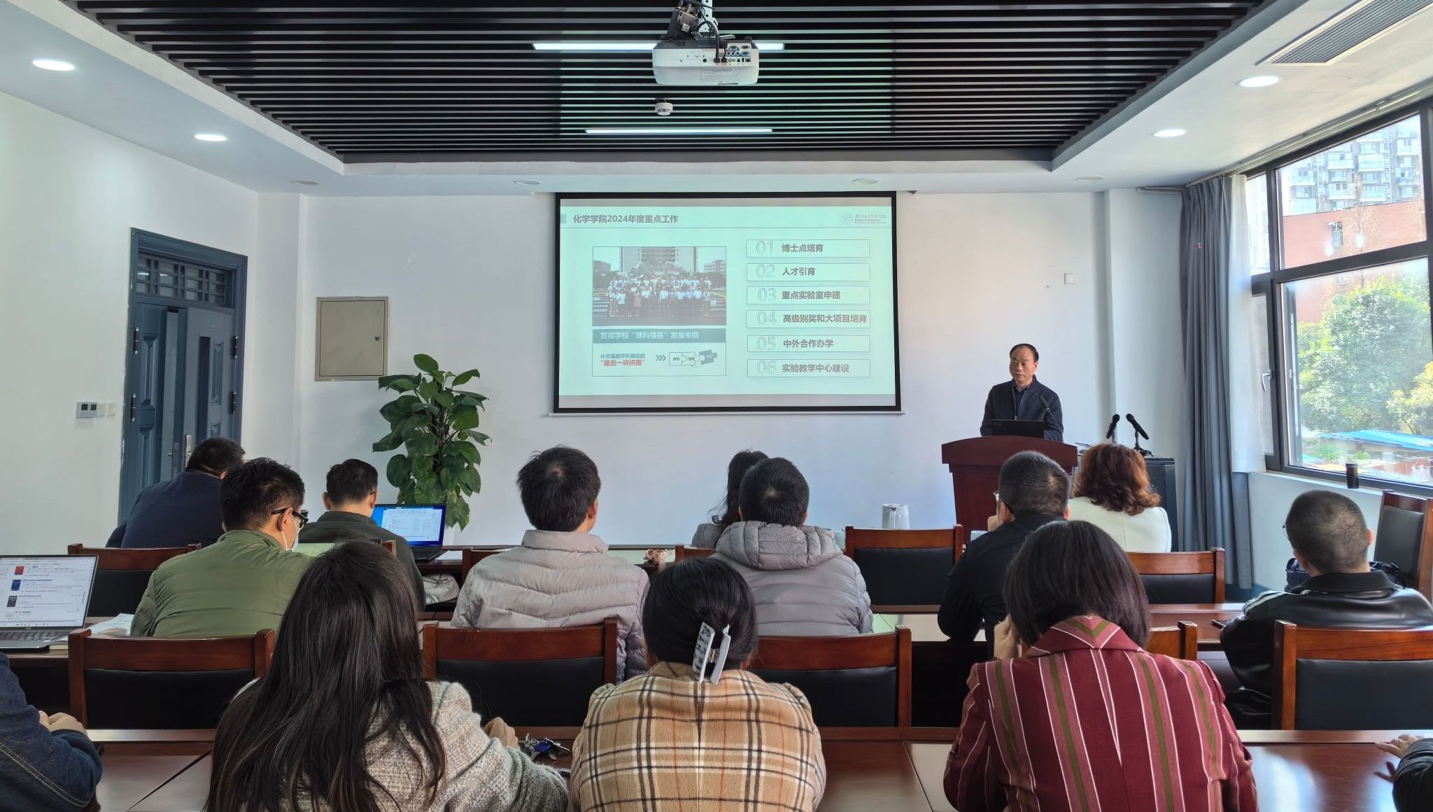 2024年7个方面、22项重点任务:落实党对学院工作的全面领导,以高质量党建引领学院高质量发展;强化学科建设的核心地位;落实人才强校主战略;提升人才培养质量;推进有组织科研工作;突出学生工作特色;做好保障服务工作。周祚万还特别部署了学院亟需推进的6项重点工作,他强调,2023年化学全体师生以实干奋进姿态扎实平稳推动学院开局起步,2024年学院要继续锚定方向,贯彻学校“理科强基”的发展举措,补好我校数理化基础学科建设的“最后一块拼图”,推进看看屋