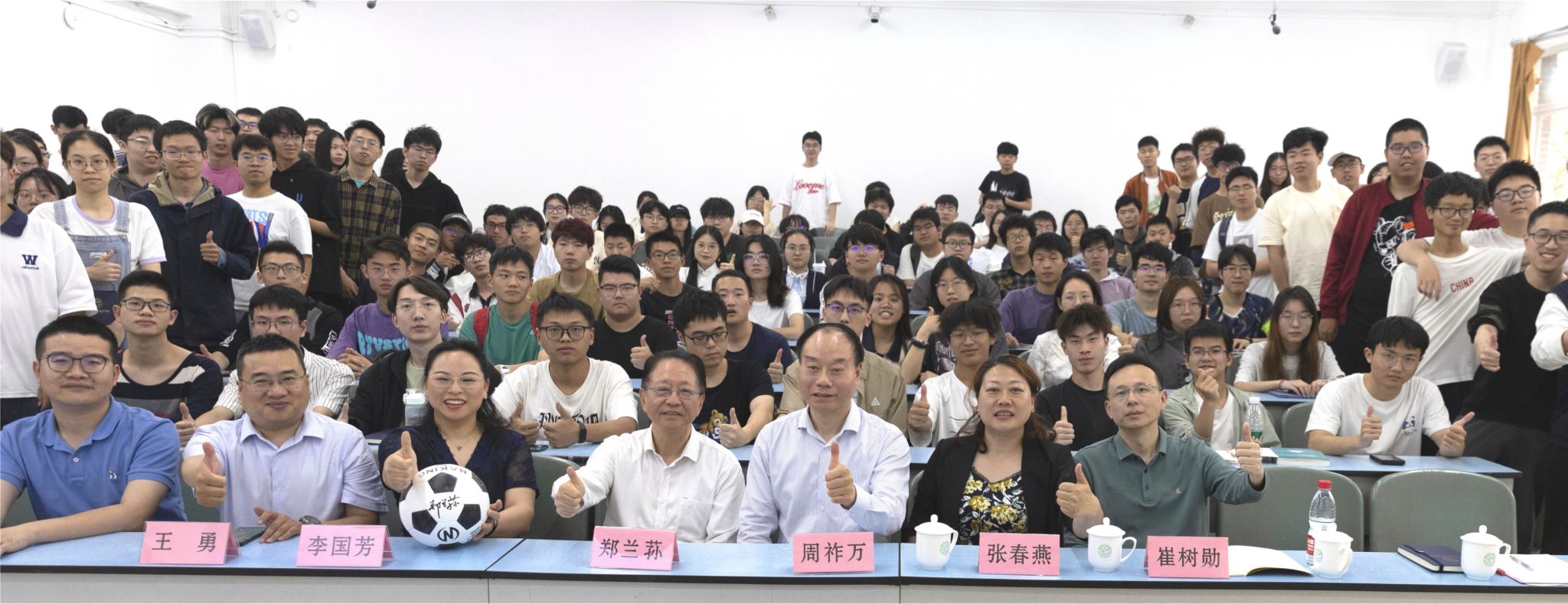 郑兰荪院士在上课演示的足球上签字并赠与学院,并与学院师生合影留念。郑兰荪院士鼓励学院师生要刻苦学习、勤奋钻研,不断追求学术卓越,勇于探索美妙未知的化学世界。