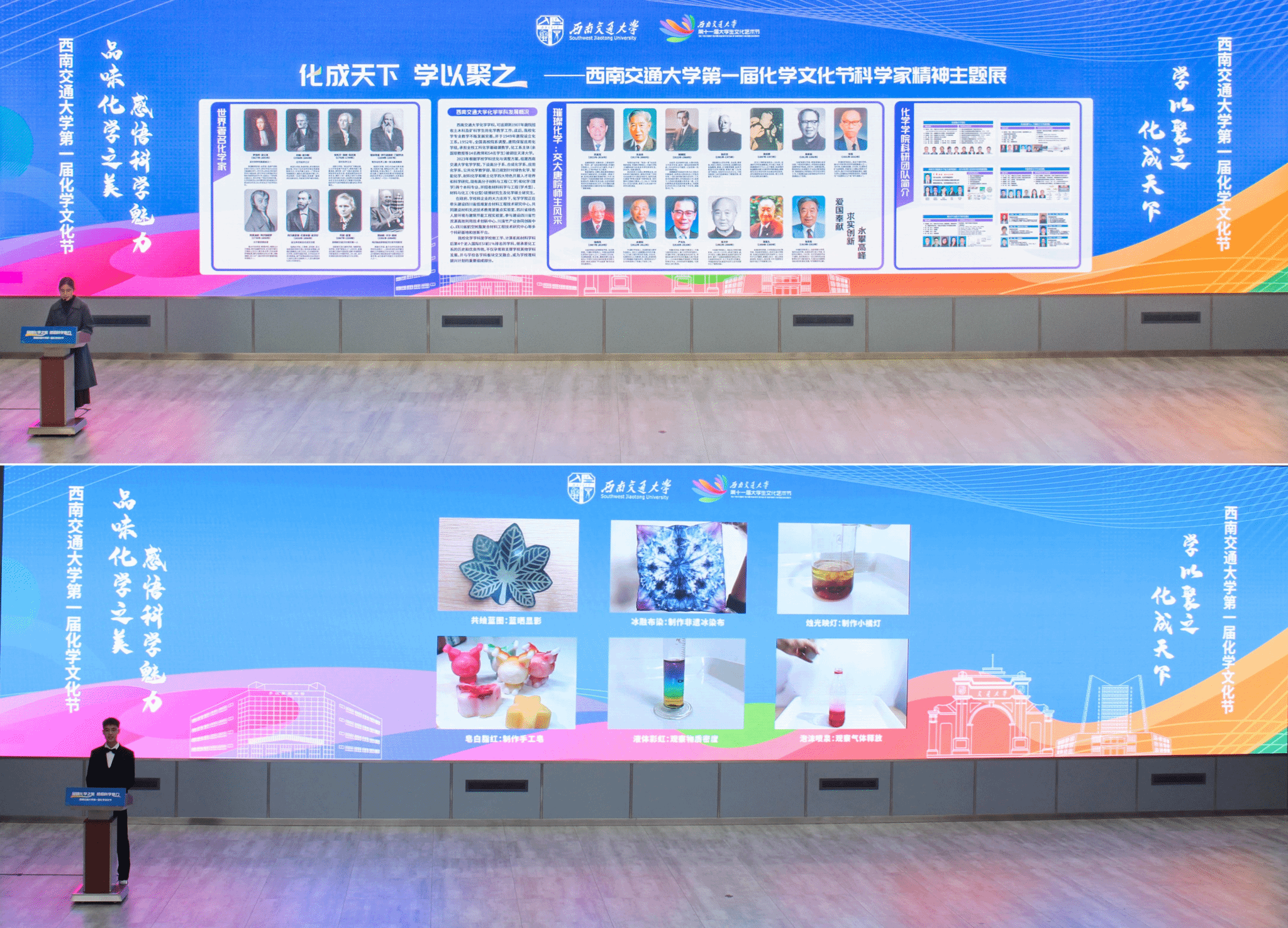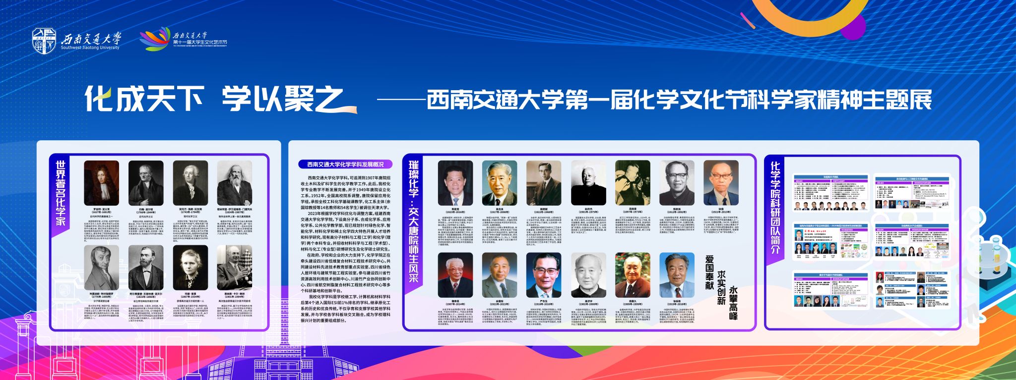本次文化节特别制作了“化成天下 学以聚之”化学科学家精神展览,向师生展示了世界著名化学家、交大唐院师生在化学领域的突出成就,以及看看屋