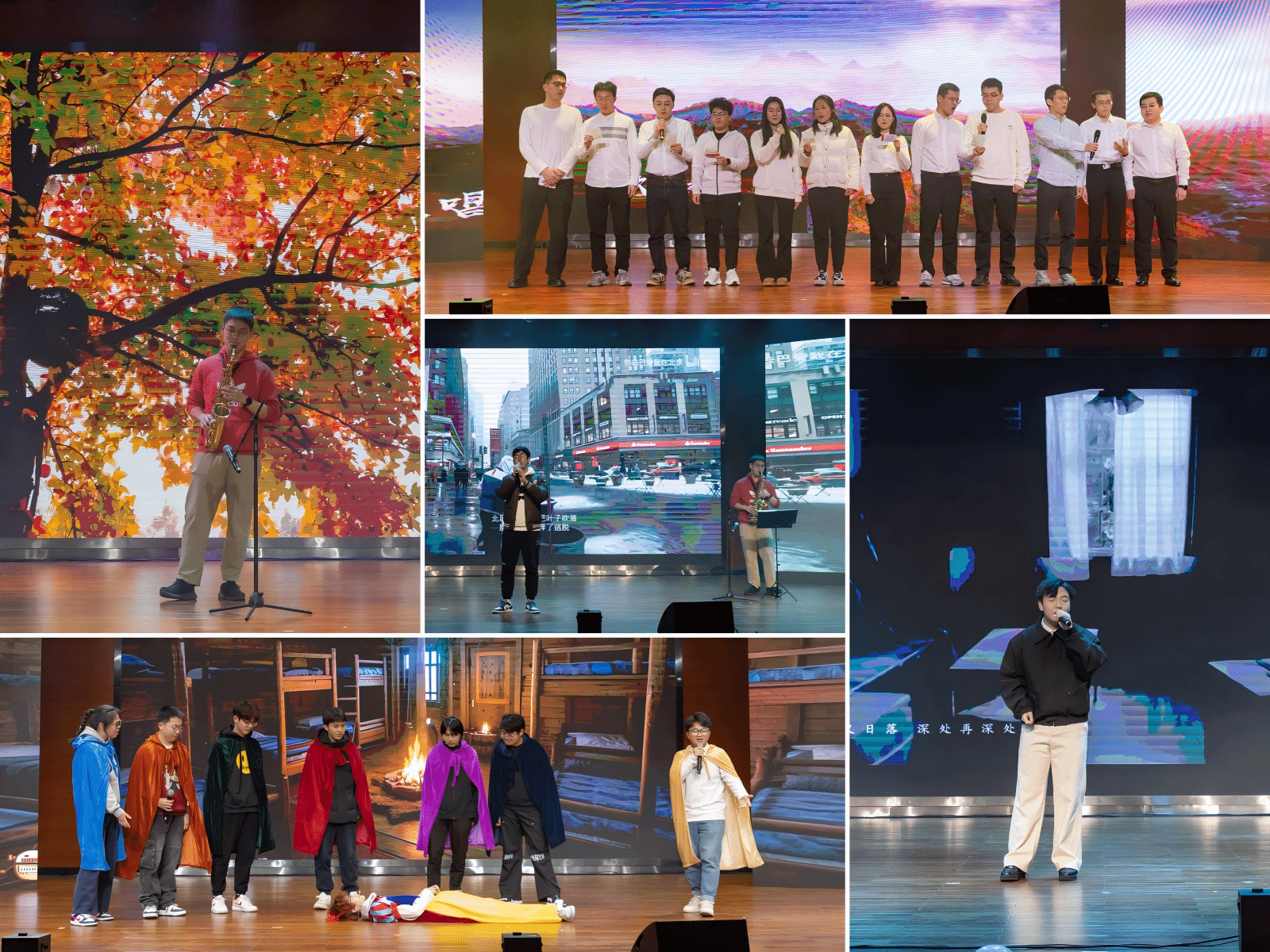 在第一篇章“化乐新声”节目表演中,学院新入职教师代表合唱《歌唱祖国》,真挚的歌声,唱响对祖国的热爱;化学2024-01班尉蓝带来萨克斯独奏《回家》,缥缈缠绵的意境,诉说着远方和思念;高分子2023-02班浦焱豪和化学2024-01班尉蓝合作歌曲《爱错》,共同聆听藏在旋律中的深情;化学2024-01班的同学们,带来话剧《白雪公主新传》,将经典童话和现代幽默元素相结合;高分子2024-02班师凯带来歌曲《一荤一素》,带领大家感受那质朴的深情与家的温暖。