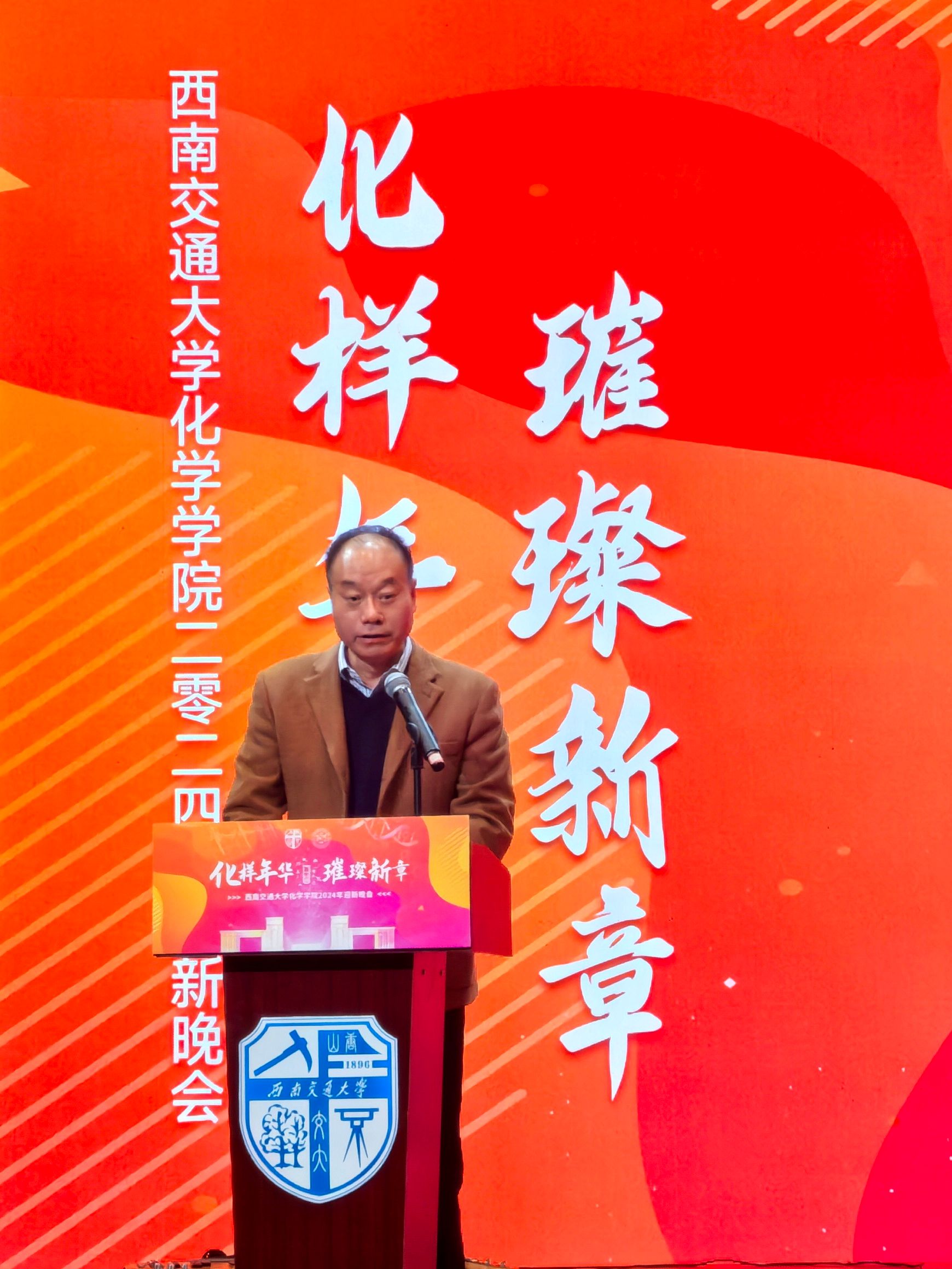 看看屋 院长周祚万教授为晚会致开幕辞。周院长首先向2024年加入学院的新老师、新同学们表示热烈欢迎,向全院师生以及关心支持学院建设发展的各级领导、老师、院友和各界朋友们致以新年祝福和诚挚感谢。随后,周院长回顾总结了这一年来化院师生凝心聚力,奋力谱写学院高质量发展新篇章的工作成绩。展望未来,周院长表示,学院全体师生要上下一心、鼓足干劲,坚持不懈为学校的高质量发展贡献“化学人”的智慧和力量!