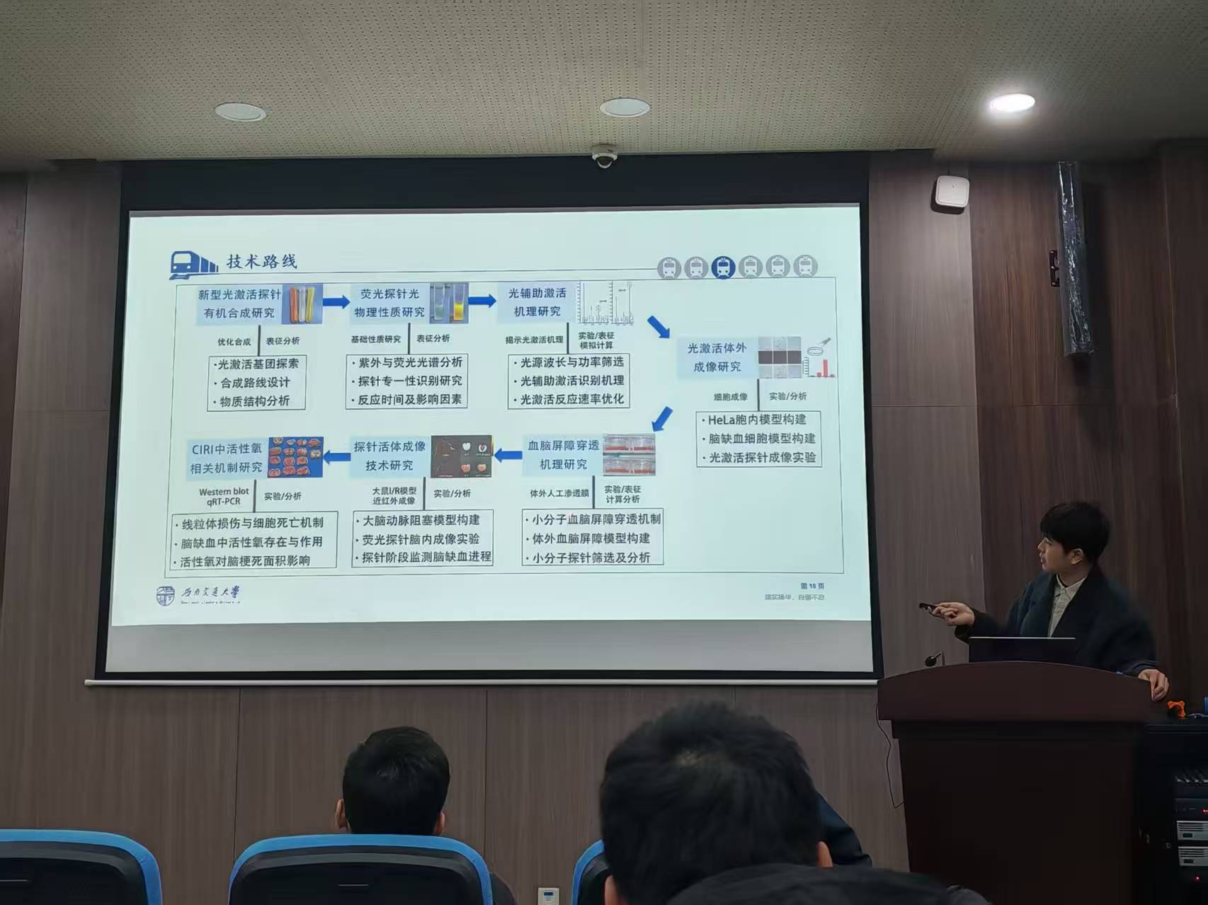 2022级博士研究生冯雨安同学以“光激活荧光探针的设计、合成及应用”为主题,分享了其在该领域的研究成果。针对传统光激活荧光探针反应时间长的难题,冯同学设计出一种“光辅助激活”策略,筛选出了多个反应速度极快的光激活荧光探针,并成功应用于活体的定时成像。