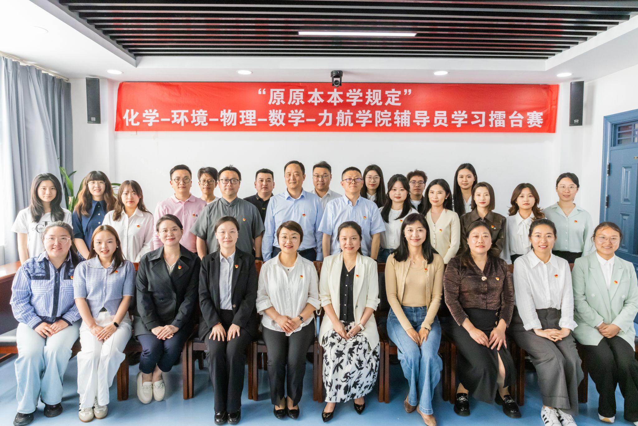 为扎实推进深入贯彻中央八项规定精神学习教育,认真学习领会习近平总书记关于加强党的作风建设的重要论述,锲而不舍落实中央八项规定精神,推进作风建设常态化长效化,4月17日下午,看看屋 、环境科学与工程学院、物理科学与技术学院、数学学院、力学与航空航天学院在九里校区联合举办“原原本本学规定”辅导员学习教育擂台赛。校党委副书记高平平出席活动。