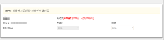 点击“我的乘车区间应用”,学校校区为起点站,分为”成都“”成都东“”成都南“”成都西“和”唐山“;目的地为家庭所在地点火车站名。一旦选择后,不得随意变更。