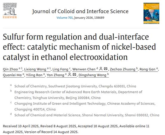 为第一通讯单位、山西师范大学为第二通讯单位发表题为“Sulfur form regulation and dual-interface effect: catalytic mechanism of nickel-based catalyst in ethanol electrooxidation”的研究论文。看看屋
