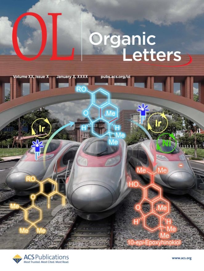 近日,功能有机分子合成团队肖检博士/彭羽教授课题组在有机化学领域Top期刊《Org. Lett.》上发表题为” Photocatalytic Tandem Radical Cyclization Enables Expeditious Total Synthesis of Epoxyhinokiol Analogues for Anti-Cancer Activity Evaluation”的学术论文。同时,该论文也被推荐为该期的封面文章进行报道。