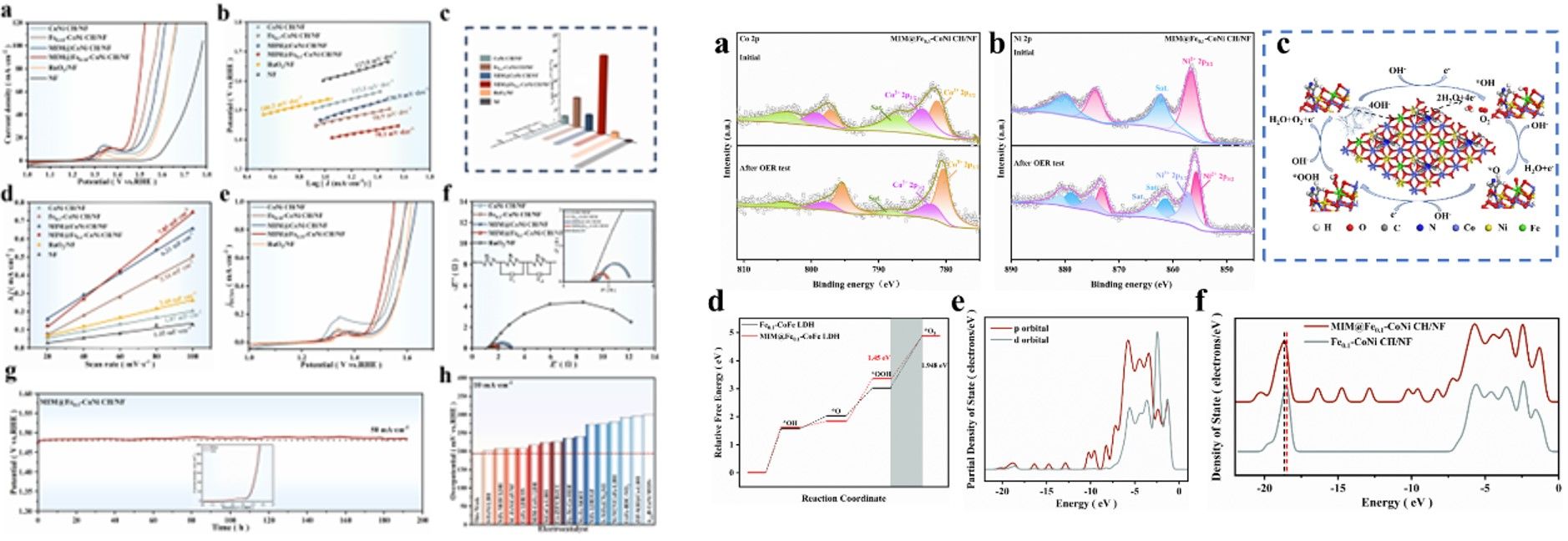 图3.左图系列材料的OER性能测试;右图OER机理探究。