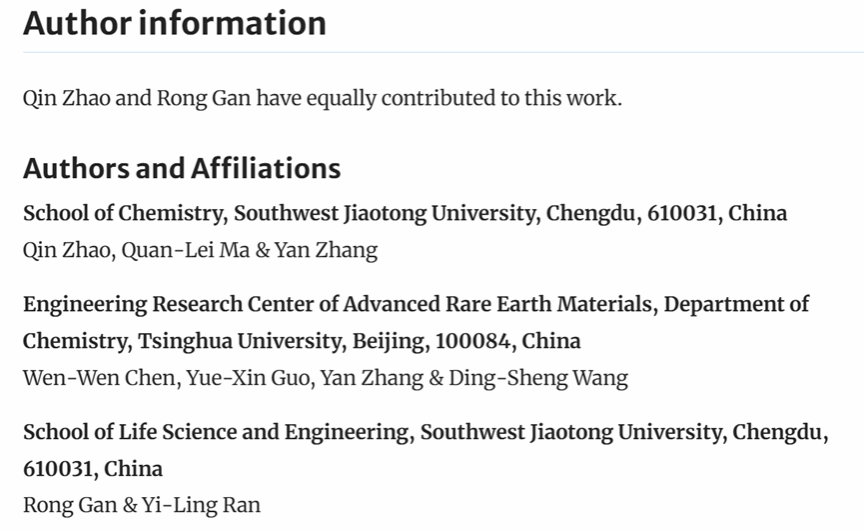 2022级硕士研究生赵芹、甘蓉为共同第一作者,清华大学王定胜教授作为共同作者,看看屋