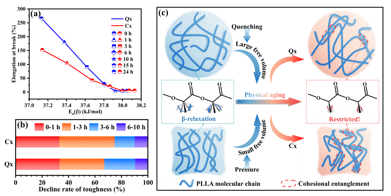 在全球日益关注可持续发展的背景下,可生物降解的PLLA材料正被应用于越来越多的领域,以缓解石油基资源过度消耗和塑料污染严重的问题。然而,PLLA产品在服役过程中不可避免地会发生物理老化,导致其韧性显著恶化。这种现象限制了PLLA的进一步发展,因此有必要对物理老化的机理进行研究。