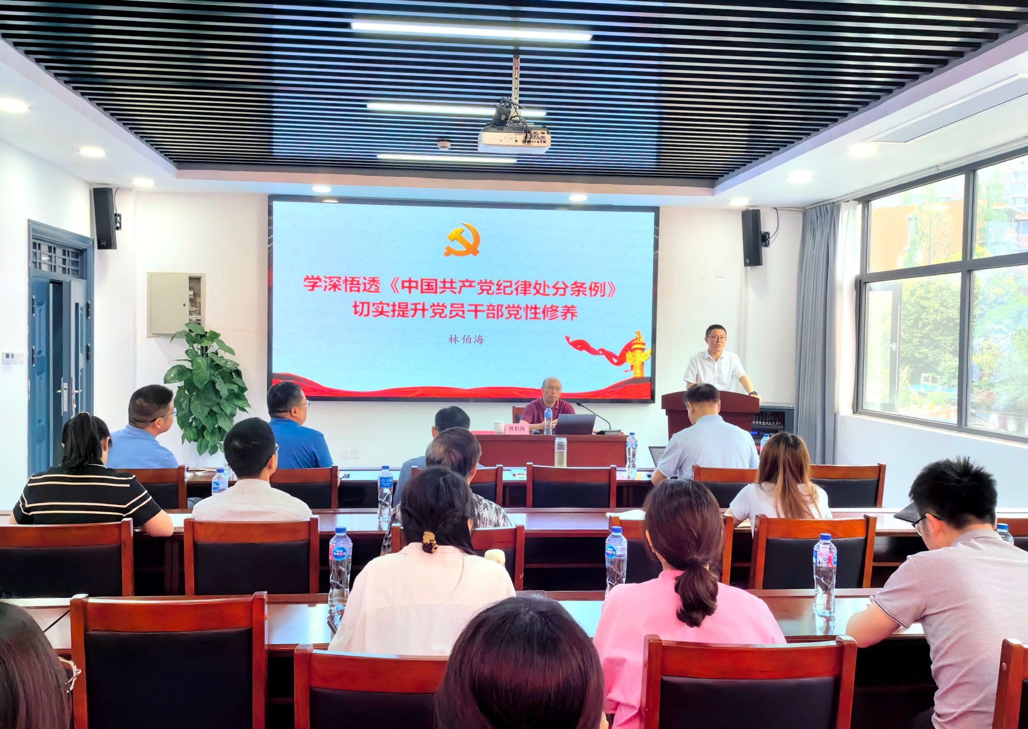 党委在九里校区工业中心C203开展党纪学习教育专题读书班,邀请到马克思主义学院教授、国家万人计划“哲学社会科学领军人才”、中央马克思主义理论研究和建设工程重大委托项目首席专家、国家社科基金重大项目首席专家林伯海教授为学院作“学深悟透《中国共产党纪律处分条例》,切实提升党员干部党性修养”专题辅导报告。学院党委书记、院长、党委委员、班子成员出席,全体教工党员、学生党员代表参加读书会。学院党委书记向仲敏同志主持读书会。