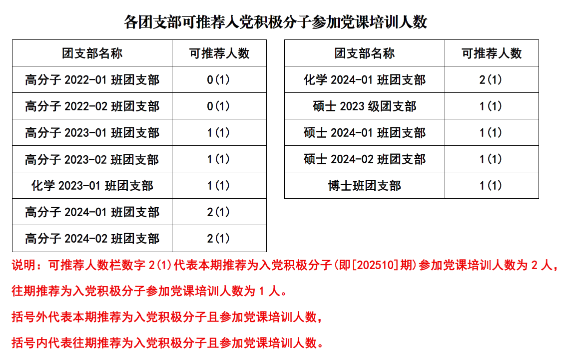 特别说明:各支部可推荐人数中已包含可推荐非团员人数,即若支部可推荐人数为2人,至多可推荐2人(含非团员)。