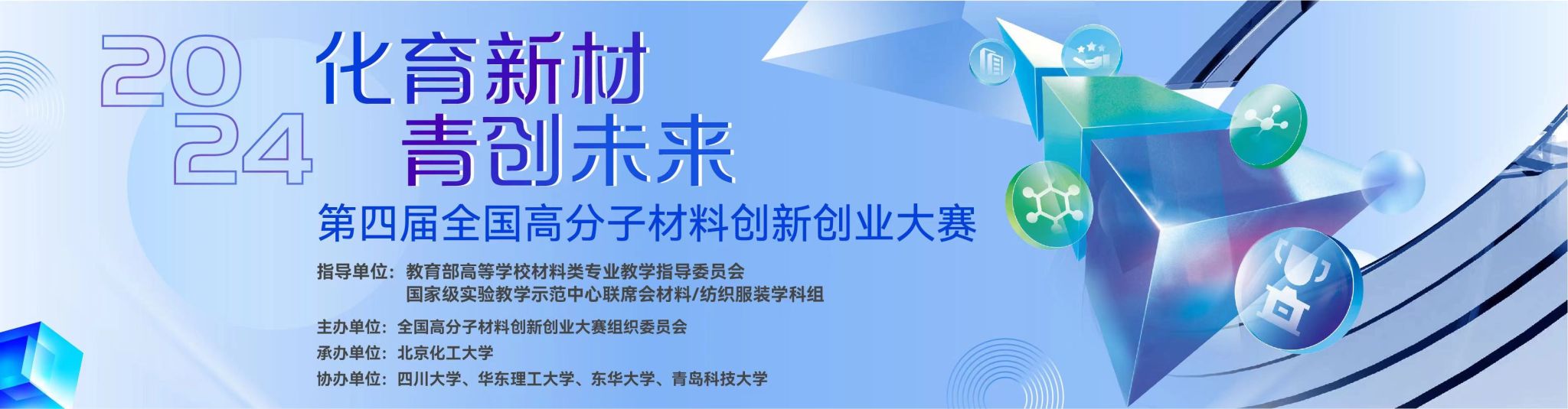 第四届全国高分子材料创新创业大赛由教育部高等学校材料类专业教学指导委员会、国家级实验教学示范中心联席会材料/纺织服装学科组指导,全国高分子材料创新创业大赛组织委员会主办,北京化工大学承办。以“化育新材 青创未来”为主题,以激发创新意识,提高创造能力,成就创业人才为宗旨。大赛旨在激发大学生创造力,促进大学生科技成果转化,展示高校双创教育成果,加强高校间双创教育交流与合作,探索创新创业教育新模式,实现以赛促学,以赛促创,以赛促教。自大赛启动以来,吸引了全国众多高校师生的积极参与,影响力日益扩大。