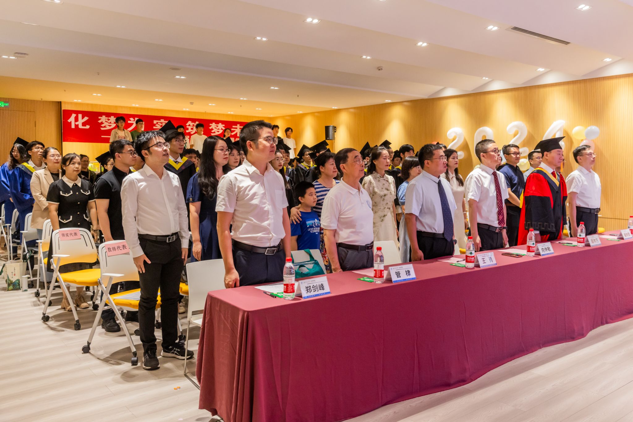 学院举办的不仅是毕业典礼,更是为同学们送上的“祝福礼”“启程礼”。在典礼接近尾声之际,高分子系教师为同学们原创了诗朗诵《扬帆远航》;2021级本科生王浩宇同学为学长学姐们送上歌曲《形容》;最后,管棣老师带领学院全体教师与全体毕业生一起合唱《送别》。